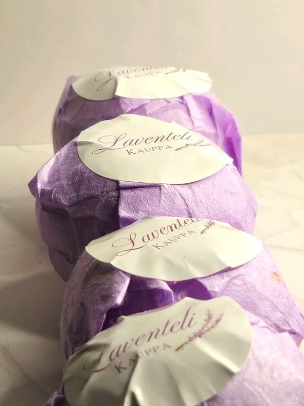 Laventelikaupan kylpypommit ovat Suomessa käsintehtyjä, 100% vegaanisia, eikä niitä ole testattu eläimillä.